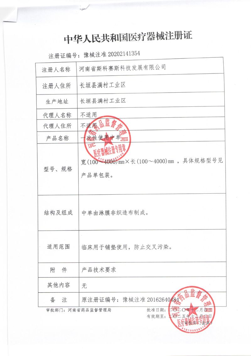 河南省斯科賽斯科技發(fā)展有限公司創(chuàng)建于 2011 年,位于“中國(guó)醫(yī)療耗材之都”- 河南省長(zhǎng)垣縣,西臨 308 省道,南靠新菏鐵路,北依長(zhǎng)濟(jì)高速,交通便捷,經(jīng)濟(jì)發(fā)達(dá),環(huán)境優(yōu)美。斯科賽斯積極進(jìn)入醫(yī)療健康和服務(wù)領(lǐng)域,秉承為用戶創(chuàng)造價(jià)值的理念,專注于醫(yī)用耗材解決方案的研發(fā)和運(yùn)營(yíng),并為用戶提供完善的產(chǎn)品解決方案;  斯科賽斯主要生產(chǎn)醫(yī)用麻醉系列、醫(yī)用高分子系列、醫(yī)用敷料包系列、醫(yī)用無(wú)紡布系列、醫(yī)用防護(hù)系列、醫(yī)用脫脂棉系列、生物材料制品類等七大類、100 多個(gè)品種、400 多個(gè)規(guī)格的產(chǎn)品。公司占地面積約 30000 平方米,建筑面積20000 平方米,擁有 10 萬(wàn)級(jí)的凈化車間總面積 10000 平方米。擁有國(guó)際先進(jìn)水平的生產(chǎn)設(shè)備和檢測(cè)儀器,技術(shù)裝備精良,檢測(cè)手段完善,為醫(yī)療行業(yè)的不斷發(fā)展進(jìn)步提供保障。公司順利通過(guò) ISO9001、ISO13485 質(zhì)量管理體系認(rèn)證。  斯科賽斯堅(jiān)持研發(fā)高科技新產(chǎn)品,力爭(zhēng)在醫(yī)療器械關(guān)鍵領(lǐng)域取得技術(shù)和研發(fā)的重大突破;立足國(guó)內(nèi)和國(guó)際兩個(gè)市場(chǎng),逐步實(shí)現(xiàn)管理理念、經(jīng)營(yíng)機(jī)制、人力資源、技術(shù)、產(chǎn)品、市場(chǎng)等全方位對(duì)接,提高企業(yè)的核心競(jìng)爭(zhēng)力;過(guò)去的歲月里,斯科賽斯砥礪前行,誠(chéng)信務(wù)實(shí),銳意進(jìn)取,不斷創(chuàng)新,用自己的睿智和辛勞,以富有責(zé)任感的使命,在探索中追求,在追求中超越,致力于成為值得信賴的醫(yī)療用品生產(chǎn)企業(yè)!在未來(lái)的日子里,斯科賽斯將一如既往豪情滿懷,信心百倍,攜手并肩,執(zhí)著追求,向更高的的目標(biāo)前進(jìn),鑄造新的輝煌!